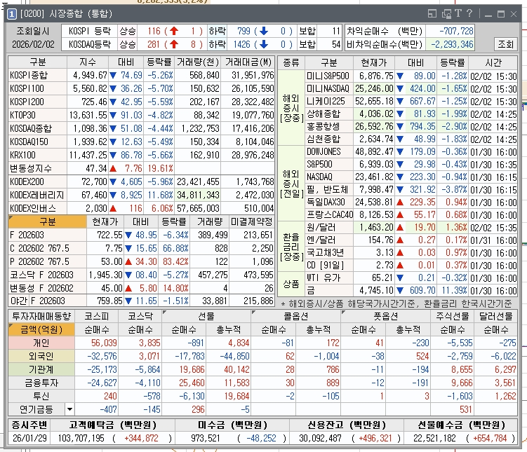 간만에 폭락이 나왔다 코스피 -5%, 코스닥-4% 그 이유에 대해서 제미나이는 아래와 같이 이야기했다 1. 미국의 이란공격 경고 2. AI거품론 재점화 – 마이크로소프트 -10% 급락 3. 인도 증시 폭락 4. 연준의...